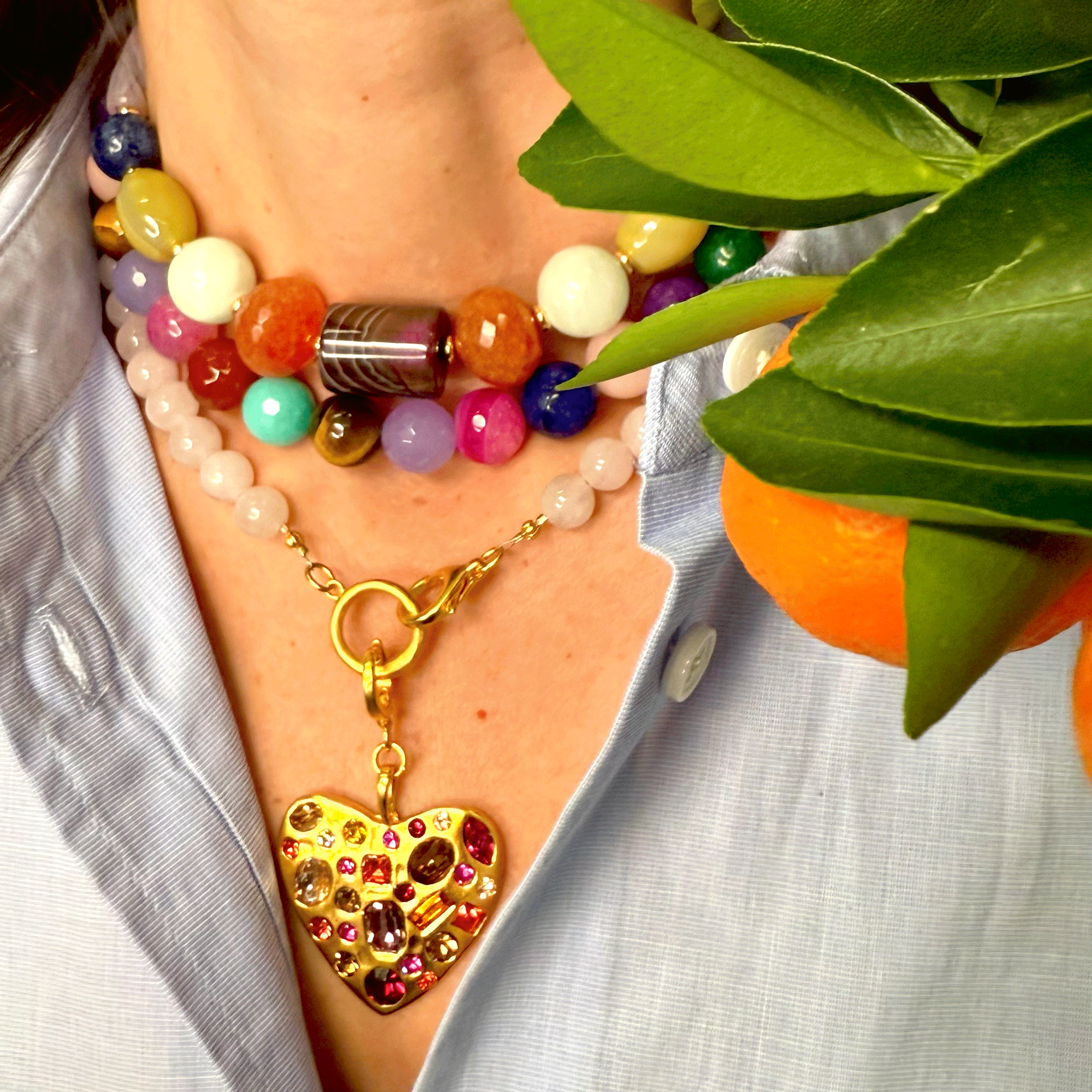 The Arielle Necklace puts the focus on the color story of the season. With its effortless balance of pastel and earth tones, this chunky hero piece showcases the lovely beauty of genuine agate, quartz, and carnelian. It’s all hand-beaded onto a silky cord that’s adjustable to your taste and neckline.