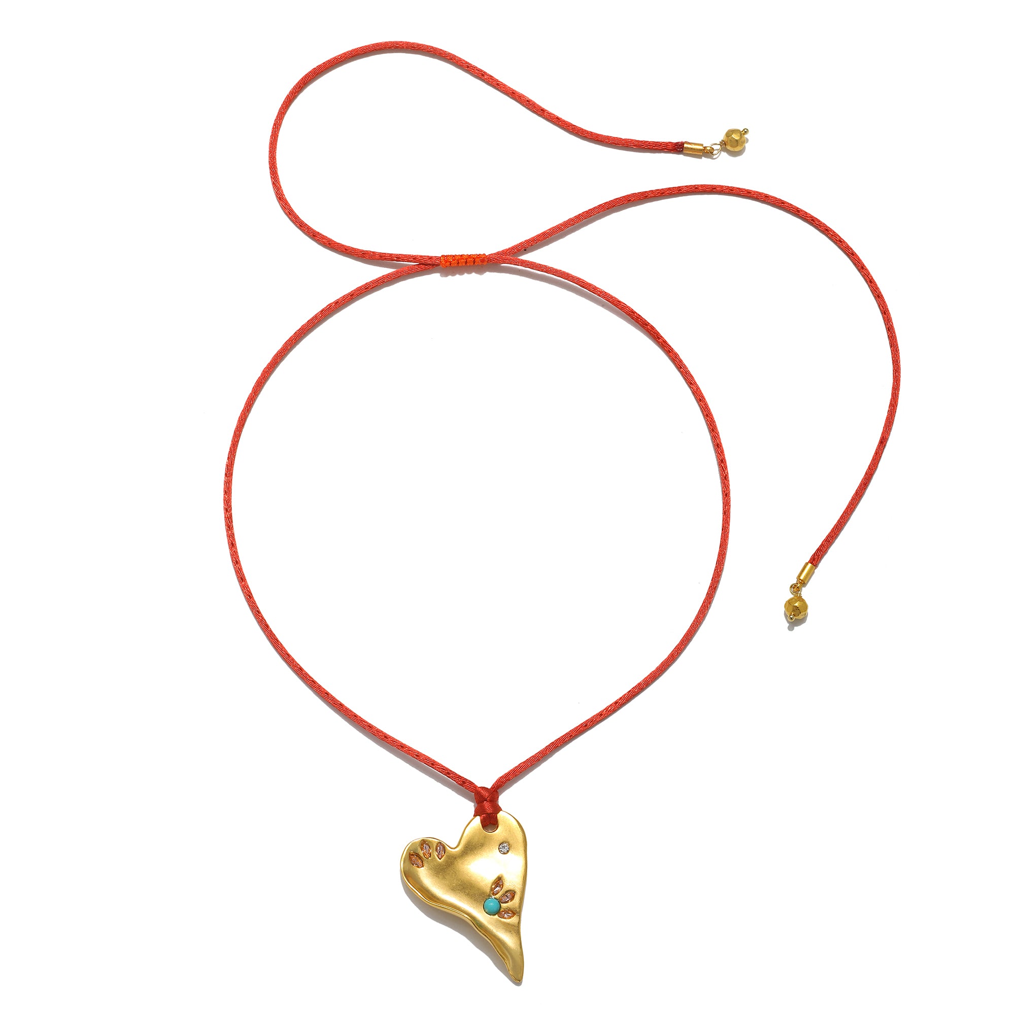 The Lola Necklace is the easy layering piece with endless potential. A hand-sculpted heart is intentionally shaped to capture an organic essence, while glass stones and a hit of turquoise give it subtle sparkle. Paired with a casually cool and adjustable silky cord, it invites you to style it your way.