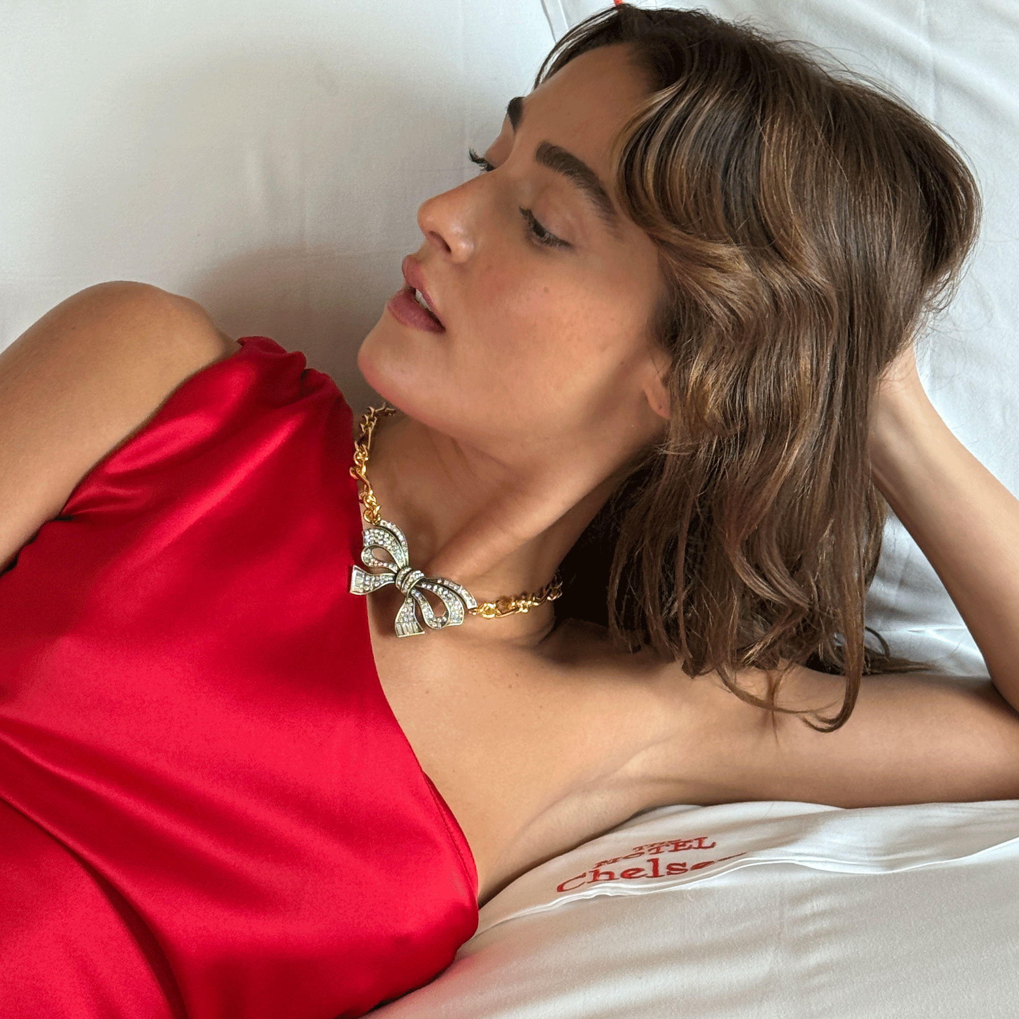 The Gracie Necklace is a playful balance of sugar and spice. Featuring an ornate crystal-embellished bow paired with chunky figaro links, this statement necklace effortlessly translates between day and night, casual and festive elegance. Style yours with a ruffled blouse or a textured dress.
