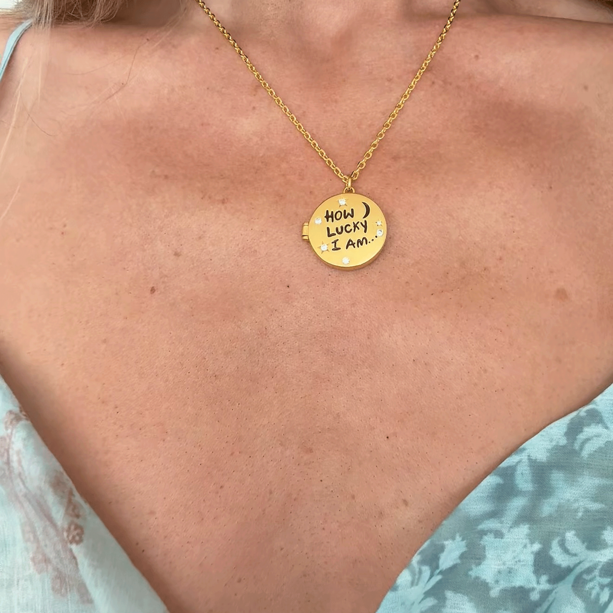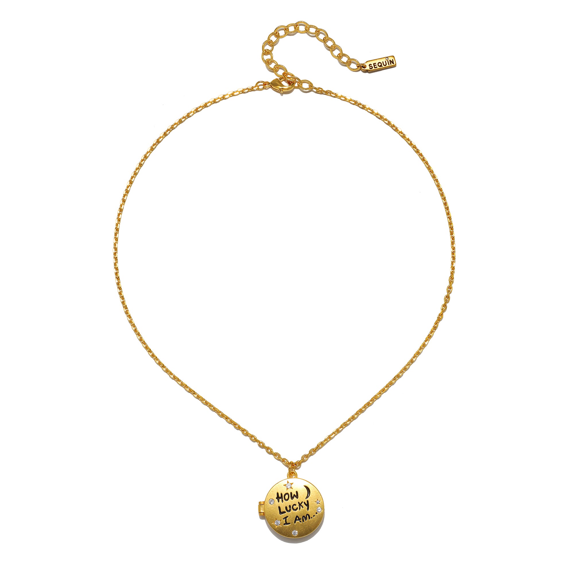The How Lucky I Am Locket Necklace is part of the Sequin x Jac Vanek collection. “Based on one of my favorite quotes from Winnie The Pooh, ‘How lucky I am to have something that makes saying goodbye so hard.’ I think it perfectly describes the beautifully heartbreaking dichotomy of life. Of love and loss and luck. And how lucky I am to feel it all.” Tuck a photo inside this functional locket, which is engraved with Jac's handwriting, for an extra personal touch.