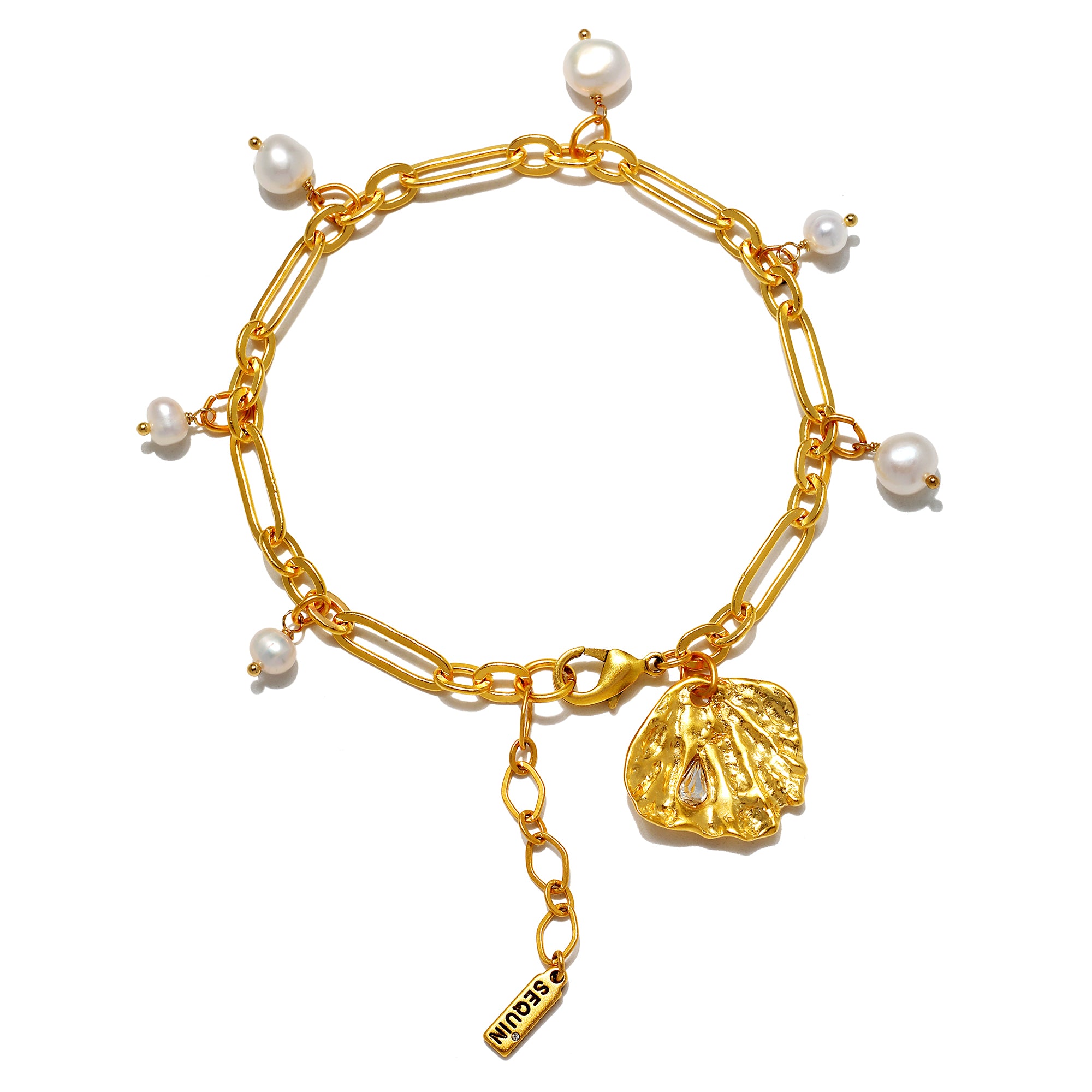 The Daniela Anklet is the adornment your ankle didn’t know it needed. Featuring delicate freshwater pearls and a sculpted seashell charm, this looks particularly pretty when it’s in motion.