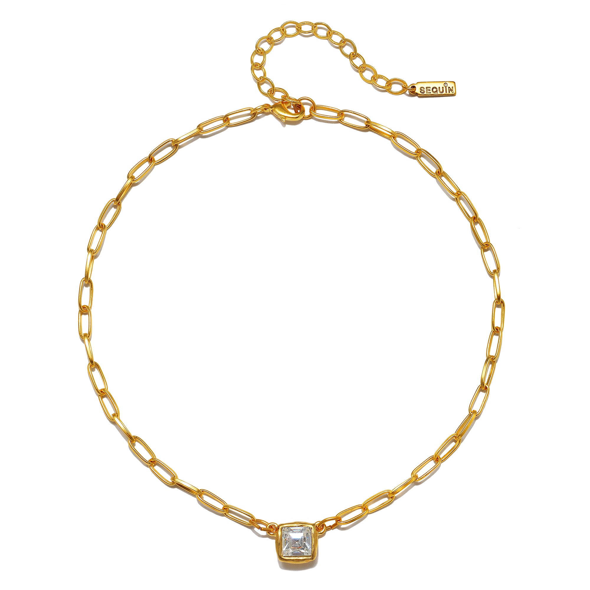 The Taylor Necklace is a versatile piece to introduce into your rotation. Sitting at choker length, this chain gets its simple adornment from a centerpiece gemstone. Style it solo or layer it with longer necklaces.