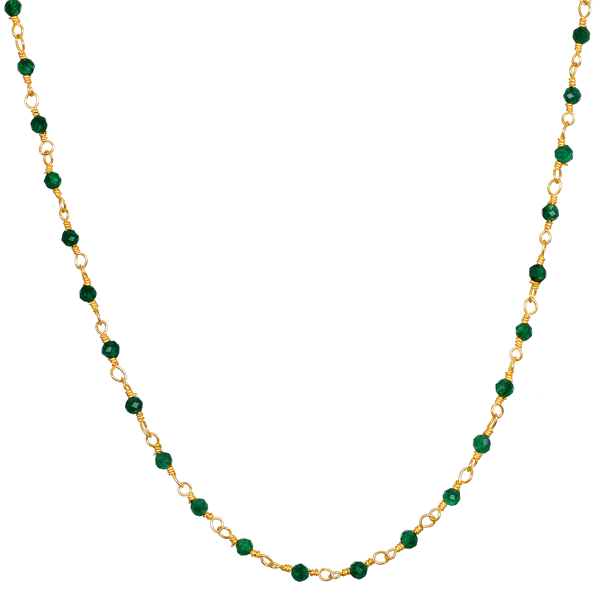 Featuring a 16" genuine emerald gem beads rosary chain , with 22K gold-dipped brass and 3" extender.