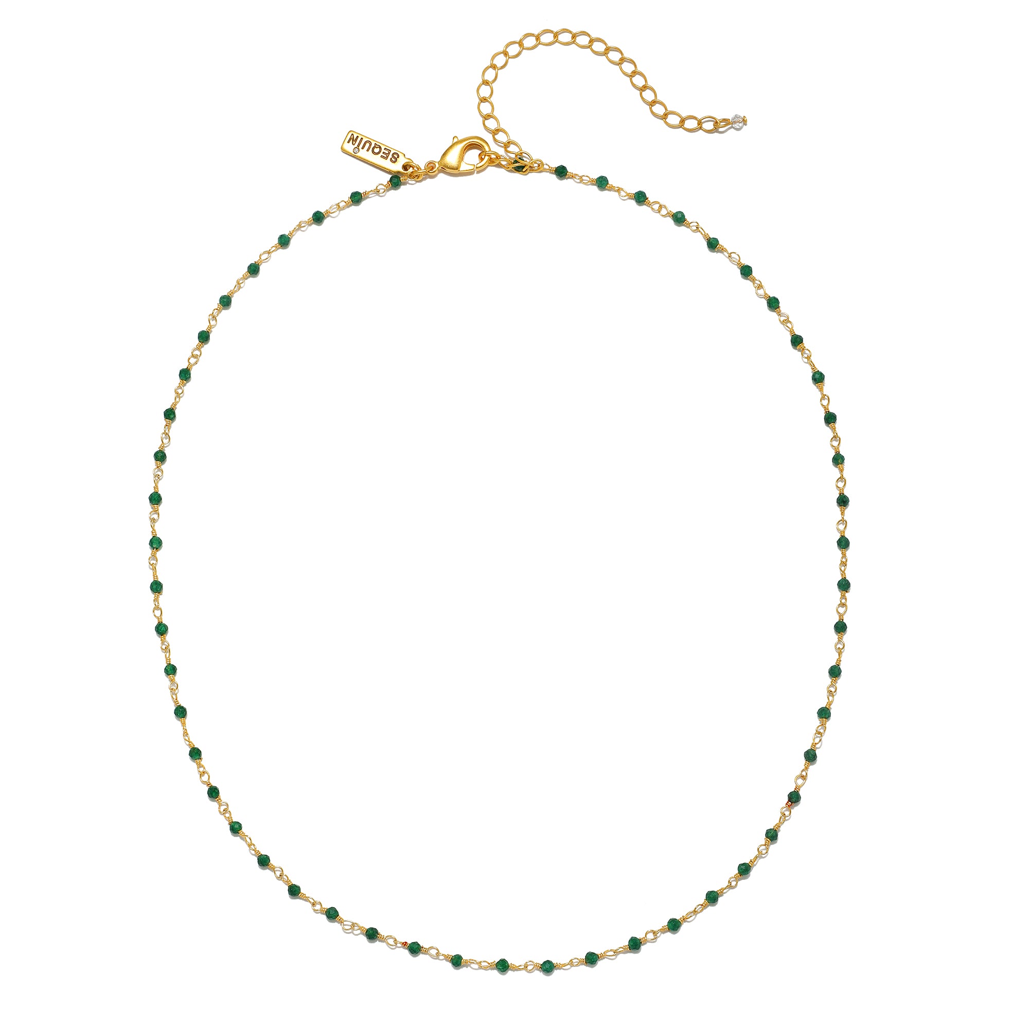 The Emerald Confetti Necklace features a delicate and shimmery chain of genuine emerald beads. With healing energy that inspires rebirth and transformation, let the stone bring luck and power to your layers. Personalize it with charms for an added boost.